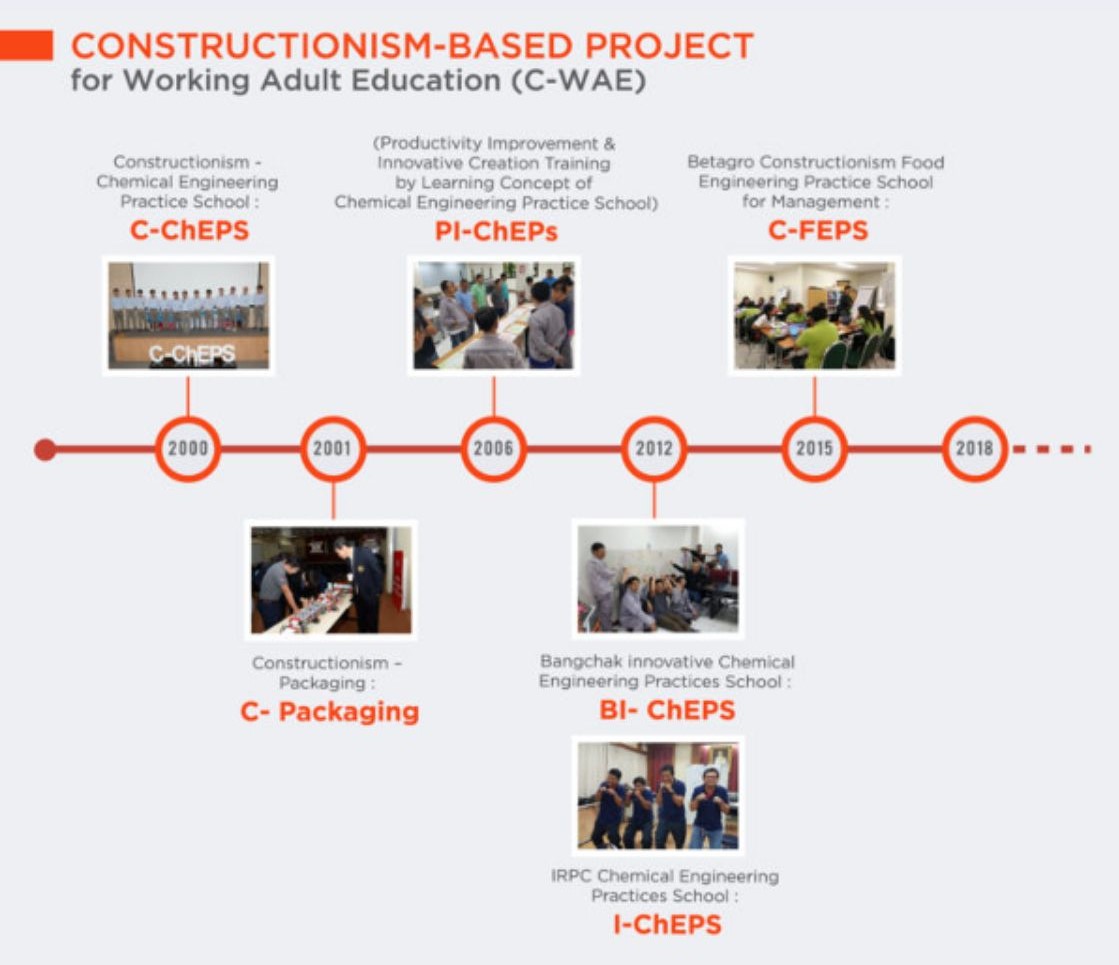 C-WAE is the term used to describe Constructionism-Based Learning Approach designed for mid-career working adults to develop their skills and professional abilities. C-WAE is small-group and customised program designed to serve the needs and gaps of professionals of individual industrial sectors such as petrochemical, agri-food business, and packaging.